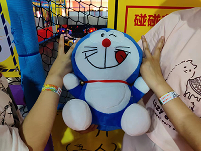 蹦沙卡拉卡,蹦沙卡拉卡,全場(chǎng)響起了音樂,原來(lái)是有獎(jiǎng)競(jìng)答活動(dòng),優(yōu)勝者可以選擇在全場(chǎng)甚至于整個(gè)倉(cāng)庫(kù)選擇自己最喜愛的娃娃將心愛的它帶回家,一輪輪的比拼,我們的道婷小同志過五關(guān)斬六將,終于進(jìn)入了總決賽,最后激動(dòng)人心的時(shí)刻到來(lái)了,冠軍爭(zhēng)奪大PK,咦一一,沒想到這么激烈的游戲最后以石頭剪刀布的方式落下帷幕,而冠軍當(dāng)然就是我們幸運(yùn)無(wú)比的道婷小同志,她選擇了最愛的哆啦A夢(mèng)(晚上她一定能抱著她睡個(gè)好覺)哈哈哈哈